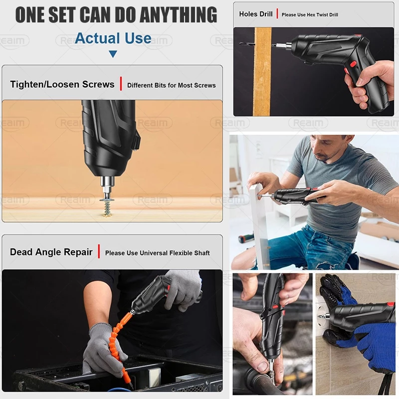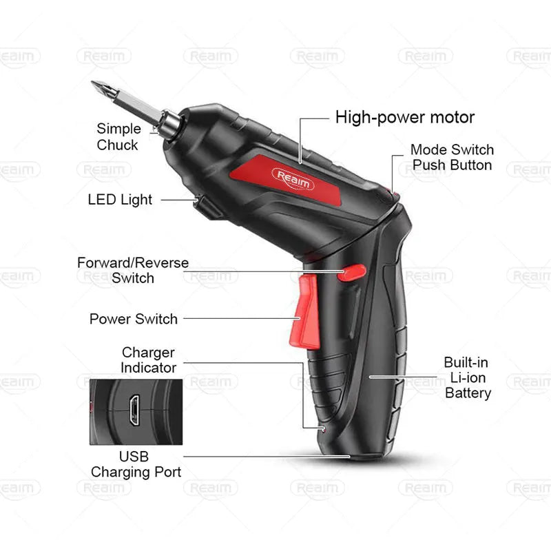 REAIM Cordless Screwdriver 48PCS Set DIY Electric Barena Drill Set Rechargeable Portable Foldable