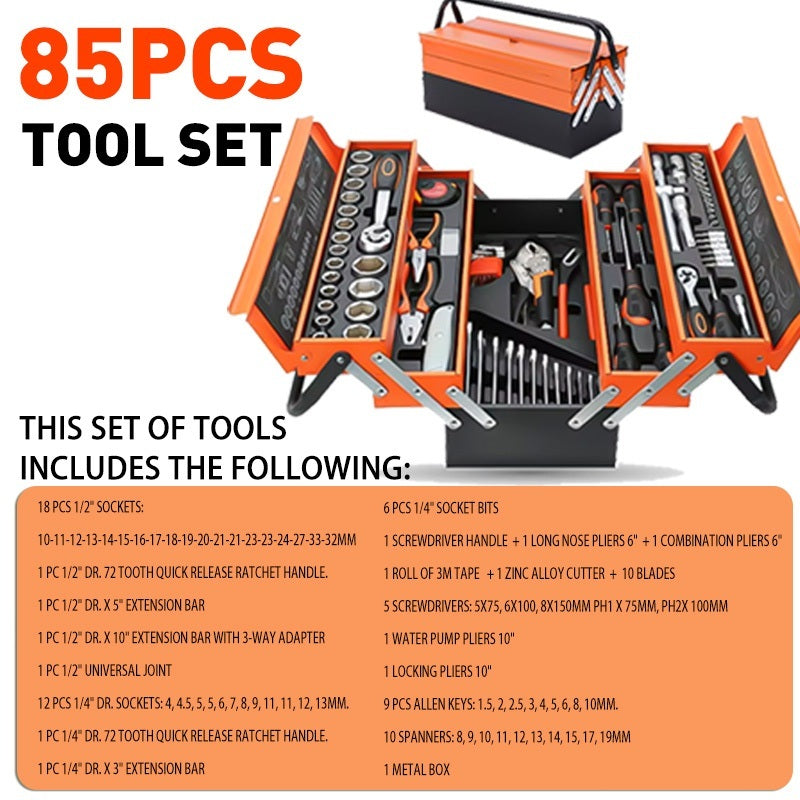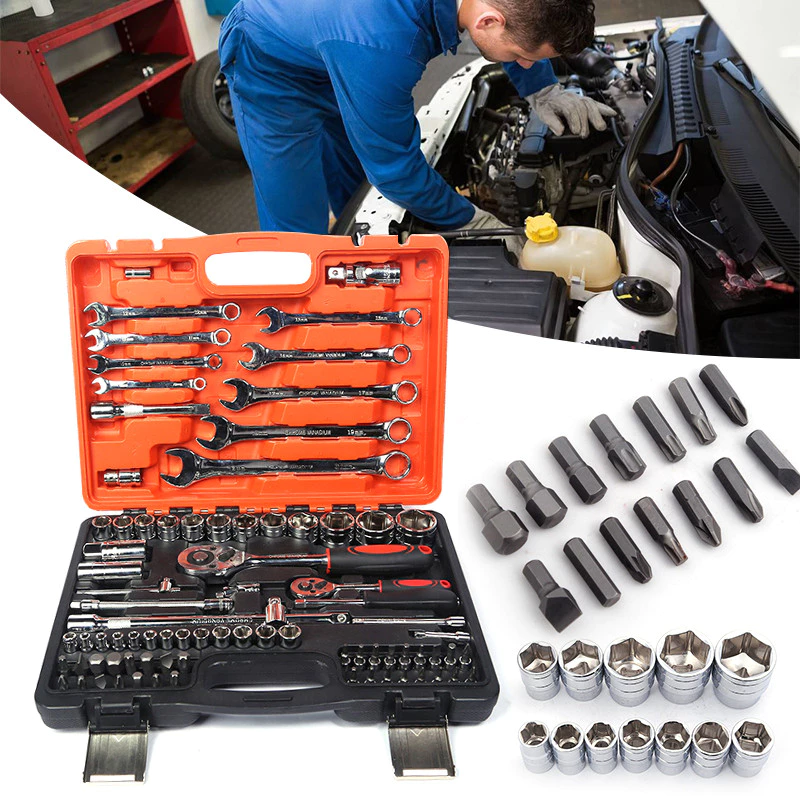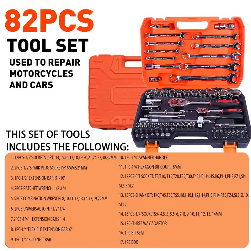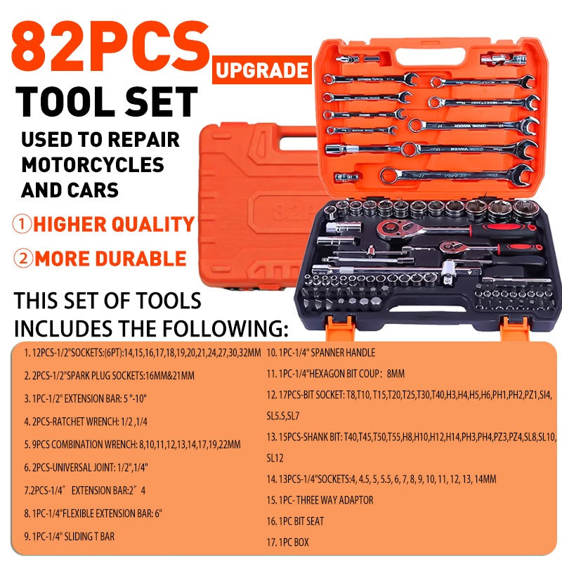 This Reaim tool set is specially designed for motorcycle and car repair. It includes sockets, wrenches, screwdrivers, and extension bars, all packed in a durable case. With higher quality and durability, it is perfect for professional mechanics and DIY home maintenance.